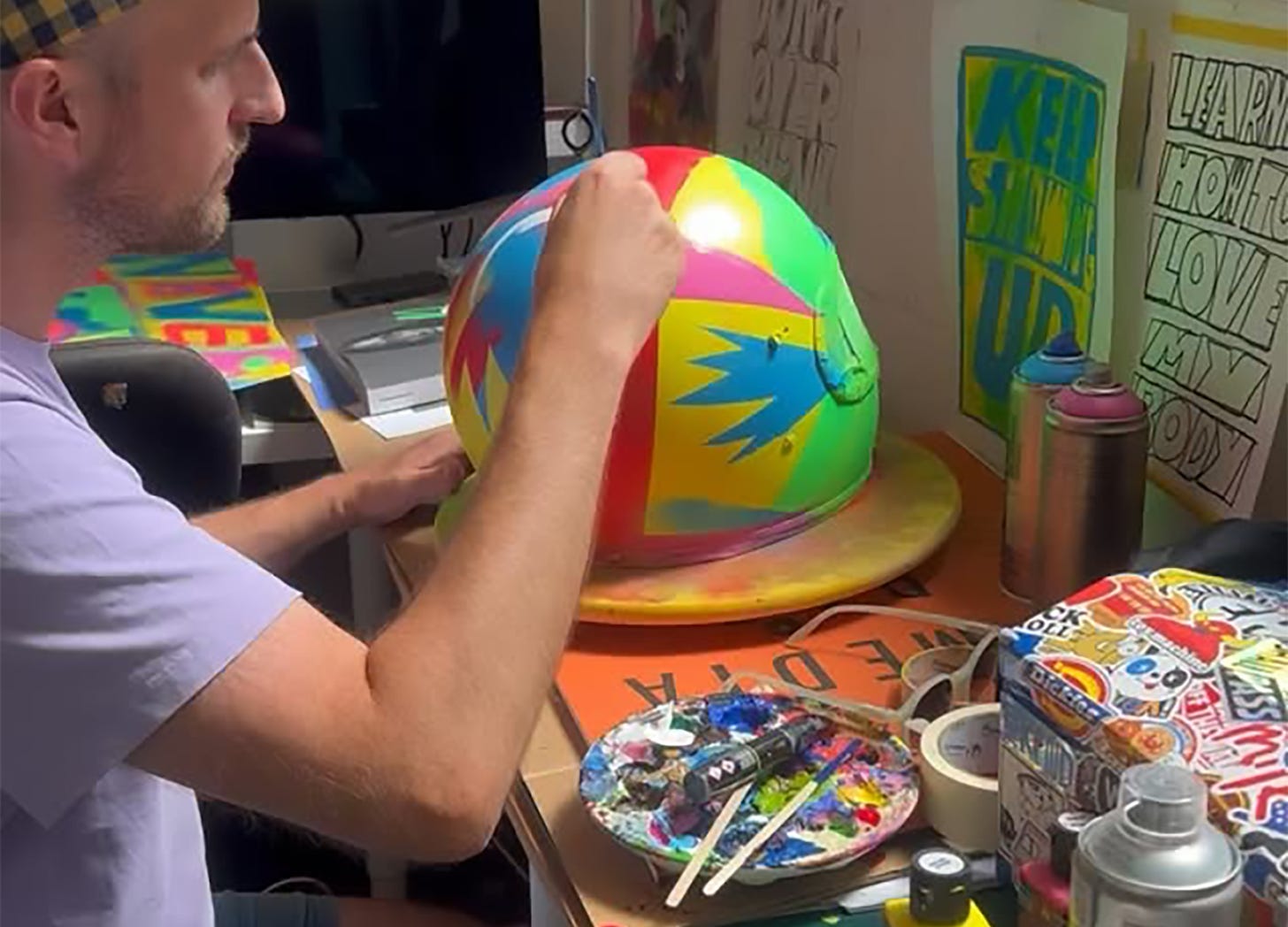 Andrew Hudson paints a helmet to protect your head, inside and out.