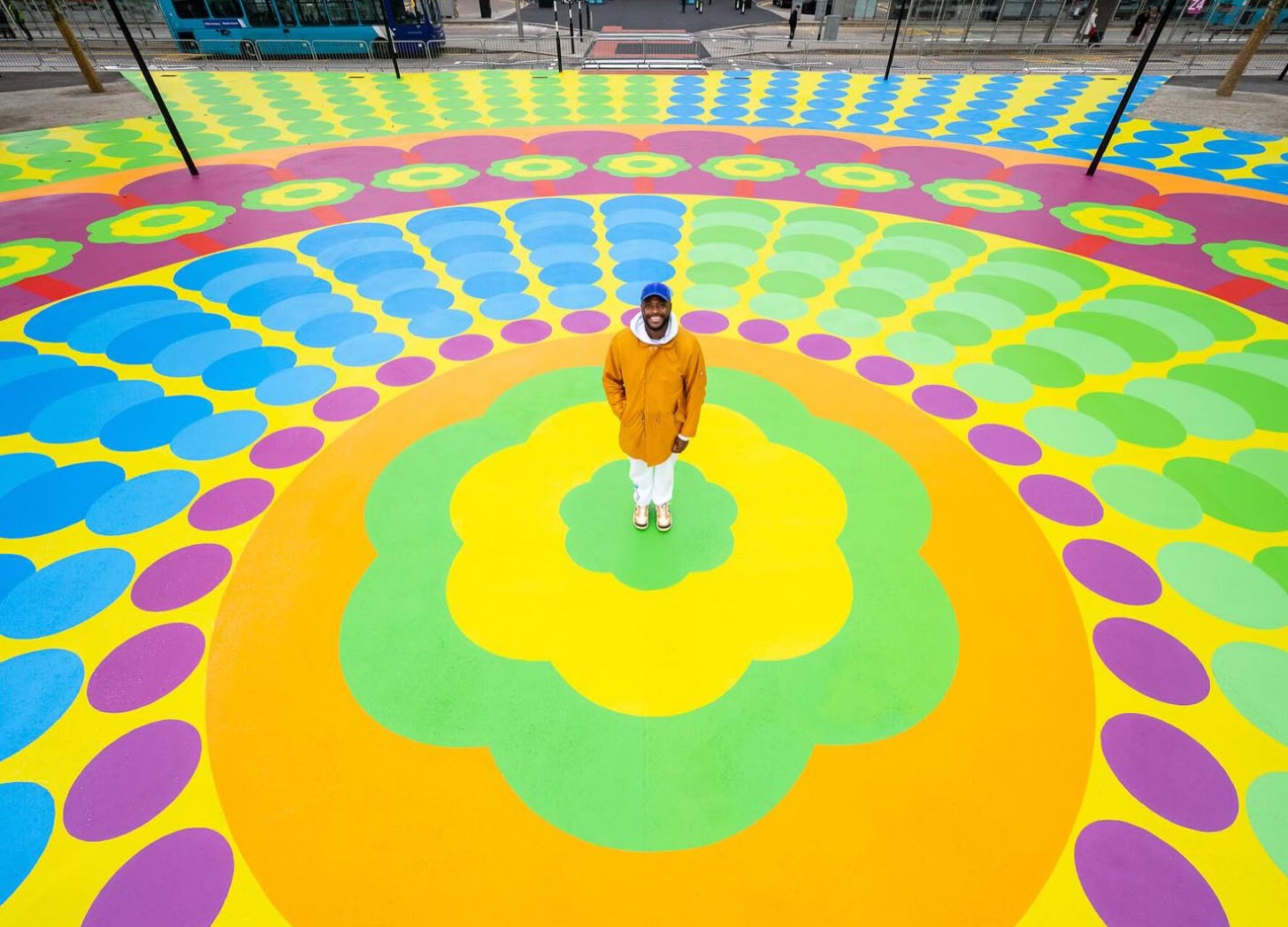 Yinka Ilori’s vibrant mural celebrates Milton Keynes’ communities and landscapes.